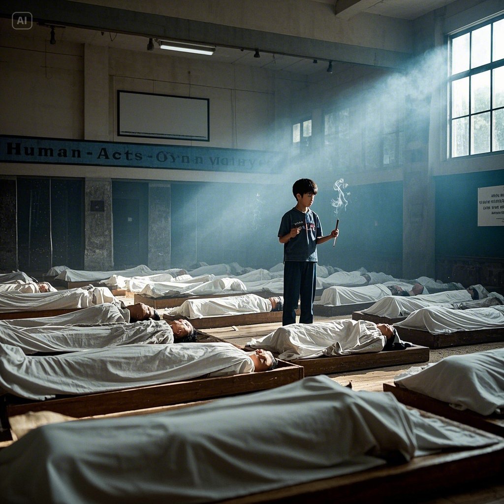 한강 작가의 "「소년이 온다」"는 1980년 5월, 대한민국 광주에서 벌어진 비극적인 항쟁과 학살을 정면으로 응시하며, 그 참혹한 시간 속에서 스러져간 혹은 살아남은 이들의 고통과 기억을 처절하고도 깊이 있게 그려낸 소설입니다.